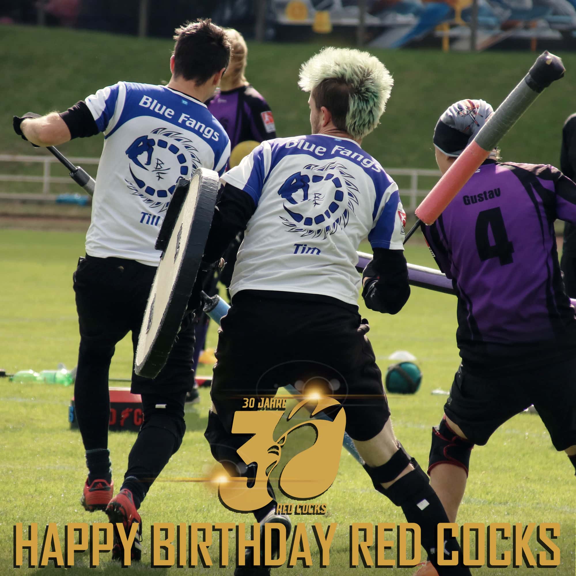 Im Jahr 2016 wurden die Blue Fangs (Jugger) im Verein aufgenommen. Auch sie waren auf der Suche nach einem Verein, um Trainingszeiten auf Sportplätzen und in Sporthallen der Stadt Frankfurt (Oder) in Anspruch nehmen zu können. Da die Red Cocks Erfahrung mit exotischen Sportarten haben wurden die Jugger mit offenen Armen empfangen. Heute sind knapp 40 Mitglieder bei uns im Jugend- und Erwachsenenbereich der Jugger aktiv.